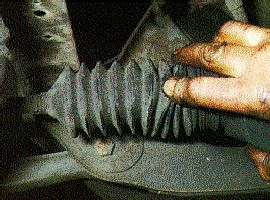 Look closely at the steering gaiters. If they are split, you will need to replace them as soon as possible or risk damage to your steering rack.