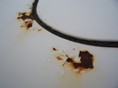 I managed to get a mint white bonnet off e-bay for fifty pounds which I have fitted. The original as you can see below was rotten right across the front lip and beyond rescuing.