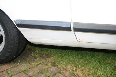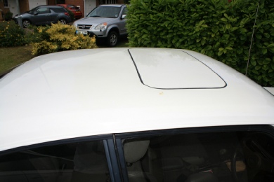 The car has been stripped of decals and various rusty bits patched up. The sunroof was removed and stripped as it had seized and jammed shut.