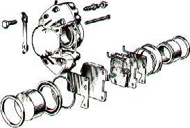To strip and rebuild a caliper is actually dead easy and afterwards my brakes were considerably better than before. Before you start this overhaul you will need to purchase a caliper repair kit from a motor factors. The kit comprises a pair of outer weather boots and a pair of inner seals. The pistons are NOT included in the repair kit and if it subsequently looks like they have had it you will need to get a hold of a pair. It may be quite hard to get new pistons but I believe that the Capri Club sell them.
