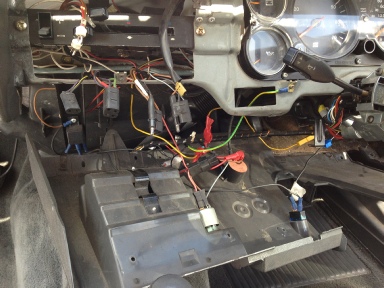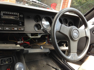 Inside the car you need to start dismantling the entire dashboard. First remove the cowlings that go around the top and bottom of the steering wheel and store in a safe place. Next job is to remove both lower dashboard panels by undoing all the self-