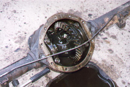 With the axle off the car, the rear diff cover was removed and the old oil was tipped out. This job is otherwise very tricky so it is a good idea to do it with the axle off the car. Inspection of the diff showed everything to be normal. The oil was a bit sludgy but this was flushed out and replaced and the cover (cleaned and repainted) was refitted with a new paper gasket.