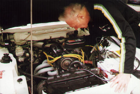 First thing was to get the car located onto the rollers which were set into the floor of the garage. It was obvious to Peter that the engine was not set up correctly at all but he sympathised with my problem that I could not do much on my own because she just would not tick over.
